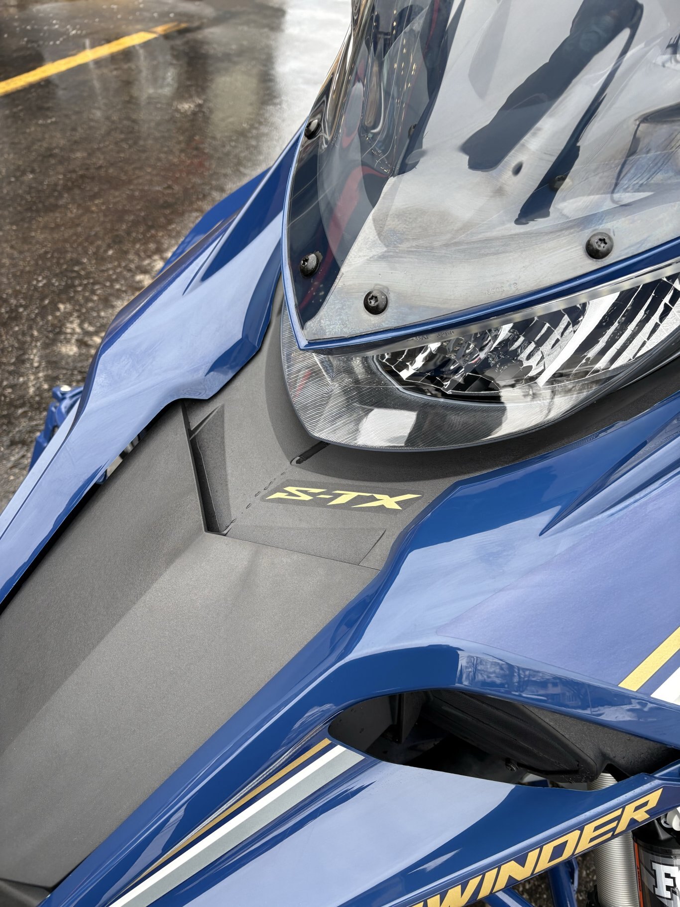 • The Yamaha designed single keel ski strikes the elusive balance between lightweight steering effort and precision handling over a wide range of snow conditions. Special staggered carbides further enhance steering response. A unique EPS shim pad assembly works in conjunction with the rubber saddle block to adjust the carbide pressure point. Overall ski stance is also adjustable by relocating the thick spacer located on each ski axle to the opposite side.